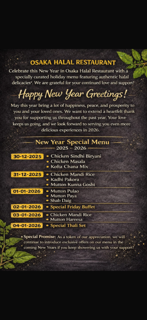2026年新年スペシャルメニューのお知らせ | Osaka Halal Restaurant