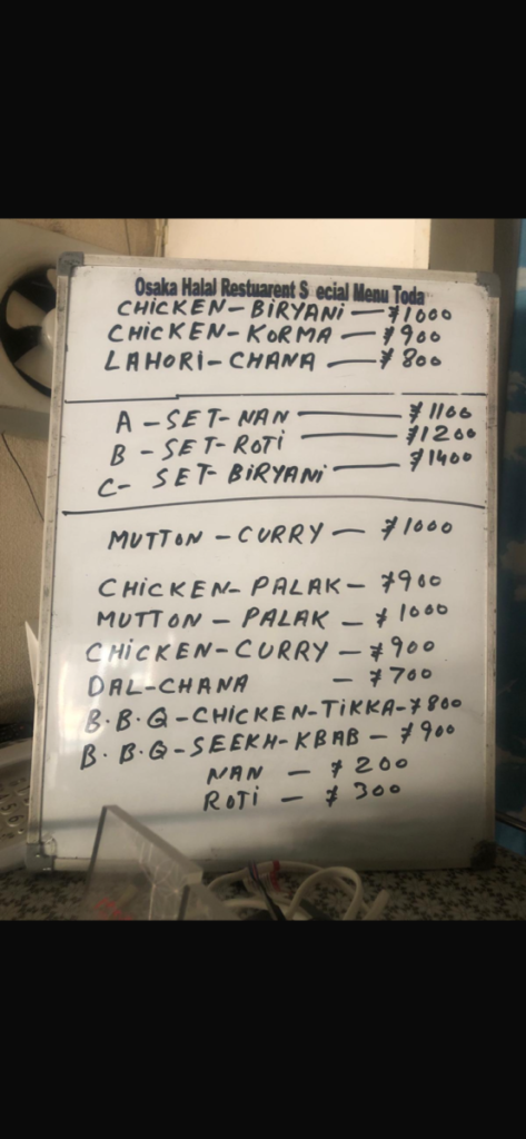 Today menu Osaka Halal Restaurant | Osaka Halal Restaurant
