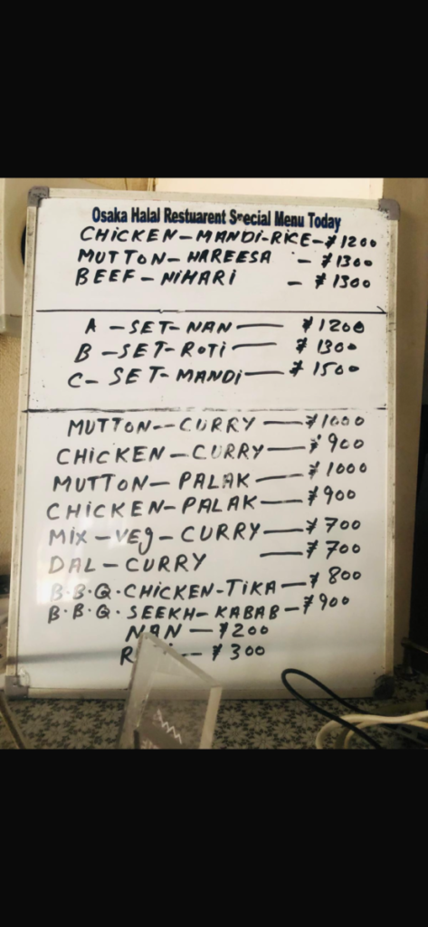Today special menu Osaka halal restaurant | Osaka Halal Restaurant