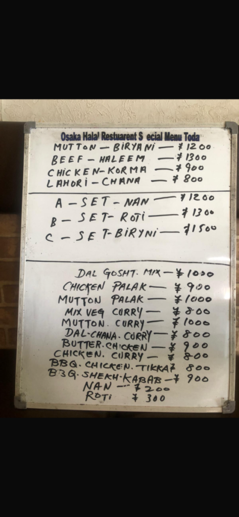 Today special menu Osaka halal restaurant | Osaka Halal Restaurant