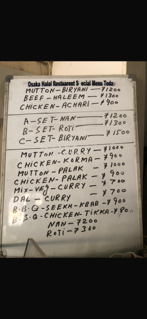 Today special menu Osaka halal restaurant