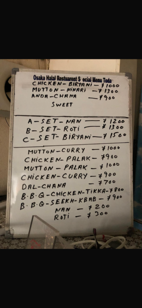 Today special menu Osaka Halal Restaurant | 大阪ハラールレストラン