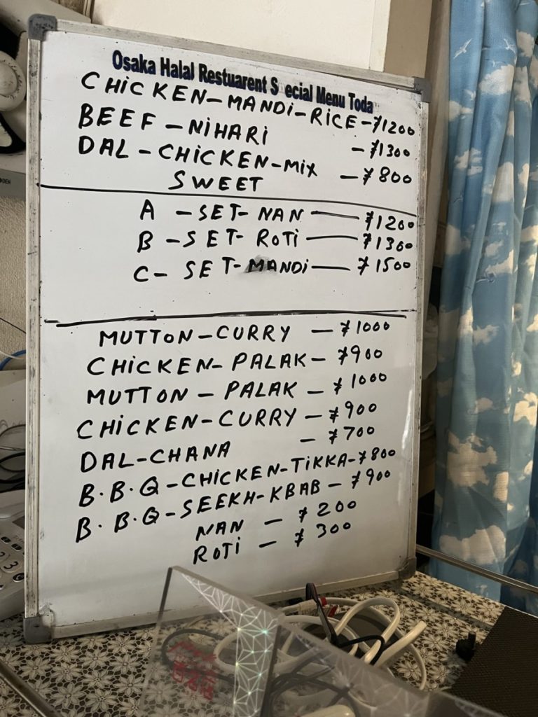 Today special menu Osaka Halal Restaurant | 大阪ハラールレストラン